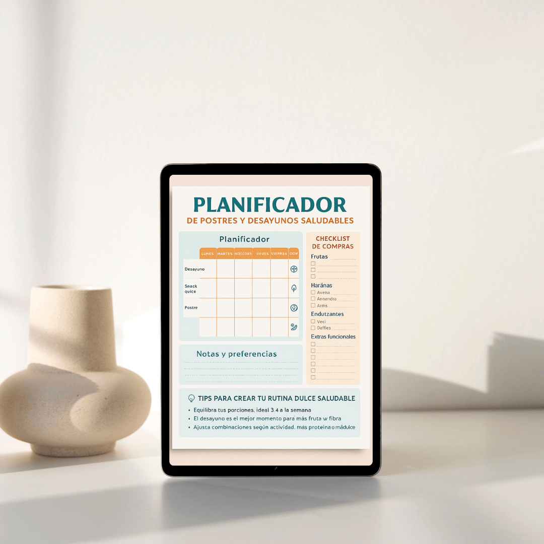 Además, incluimos guías extra para entender mejor qué harinas usar, cómo endulzar sin azúcar refinado y cómo organizar tus comidas de manera práctica cada semana.